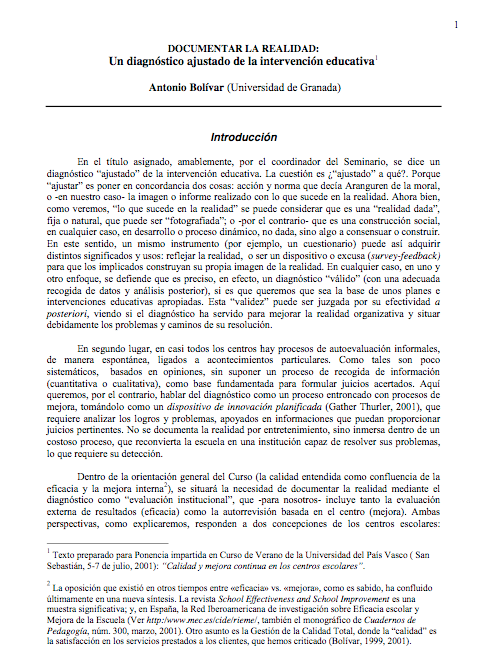 3. Antonio Bolívar, Documentar la realidad. Un diagnóstico ajustado de la intervención educativa.