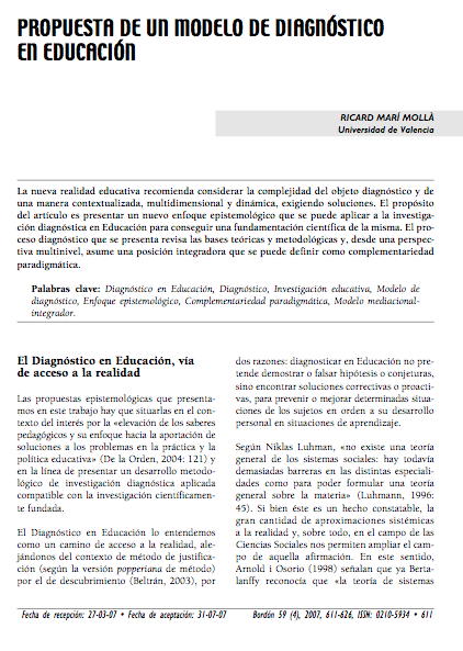 6. Ricardo Marí Mollá, Propuesta de un Modelo de diagnóstico en educación.